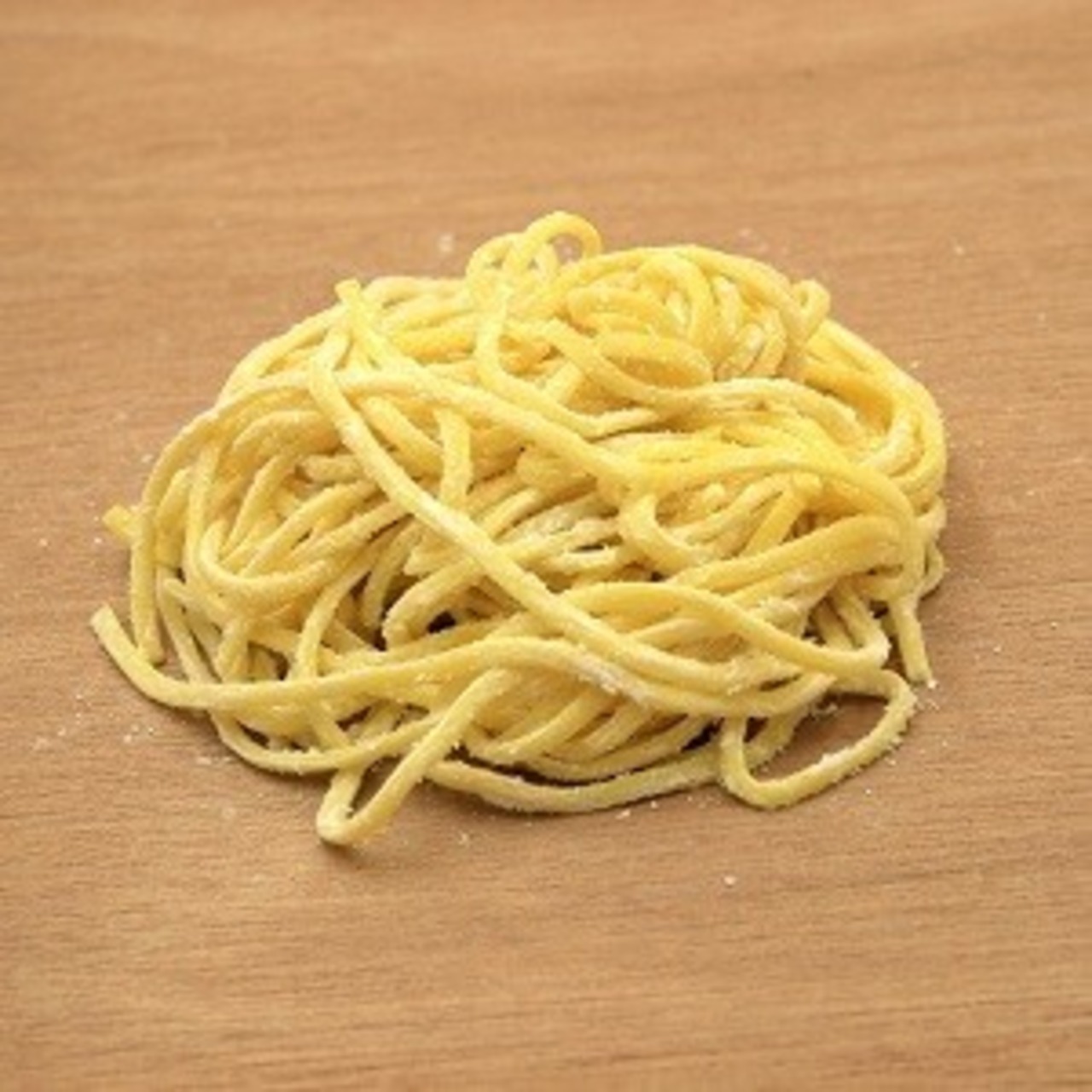 ロール式製法で作る生パスタは、手打ち風のコシがあり弾力のある食感が特徴。